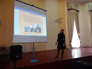 «Історики» розкрили джерело походження і розвиток джазу, пов’язаний з існуванням рабства в далекій Африці, «географи» провели шляхами з Африки в Новий світ невільників, так ми дізналися про батьківщину джазу, «дослідники-мистецтвознавці» провели пошукову роботу і познайомили всіх присутніх з особливостями джазової музики, різними витоками джазу і першими «джазовими королями». Цікаву роботу на тему: «Луї Армстронг» презентувала Полуниченко Анастасія.
