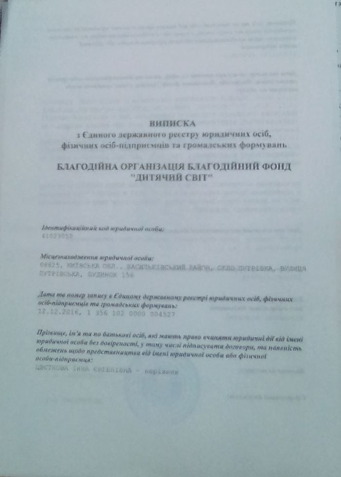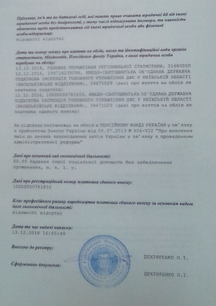 Юридична адреса : 08625, Київська область, Фастівський район, село Путрівка, вул. Путрівська, 156